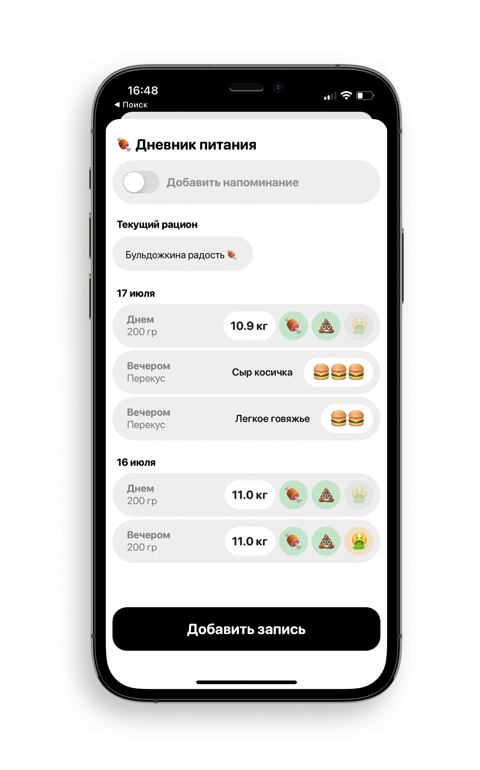 Любимое приложение, которое помогает заботиться о моей собе. Милое, уютное! Особенное спасибо за справочник опасных продуктов и удобный таймлайн ❤️❤️❤️