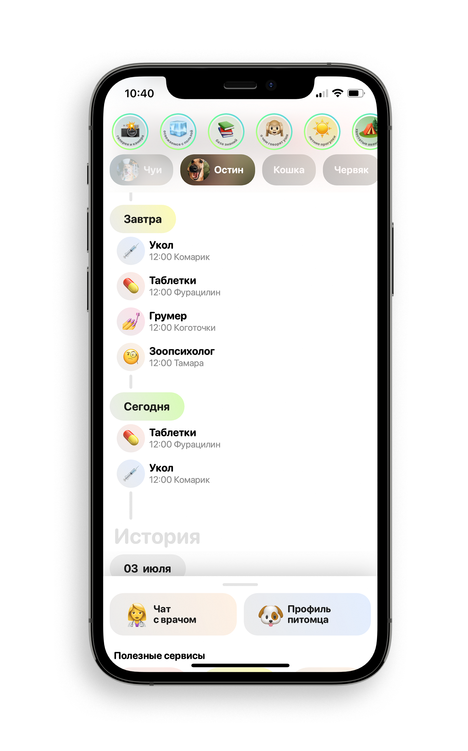 Можно проконсультироваться с ветеринаром. Напомнит о вакцинации и обработках. Очень удобно. Много полезной информации по уходу за питомцем. Для неопытных хозяев очень полезное приложение.